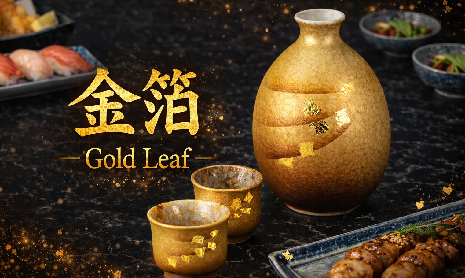 JAPANESE KUTANI PORCELAIN SHOCHU CUP SET (PAIR) – GOLD LEAF DECORATION