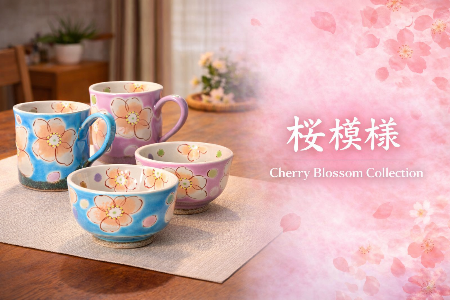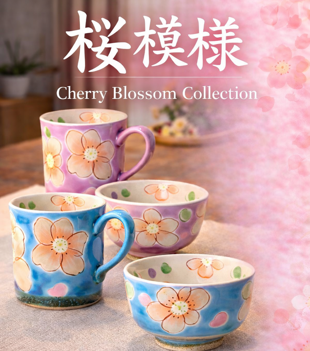 KUTANI PORCELAIN MUG CUP - KINRANDE SAKURA MON MOTIF, JAPANESE CERAMIC ART