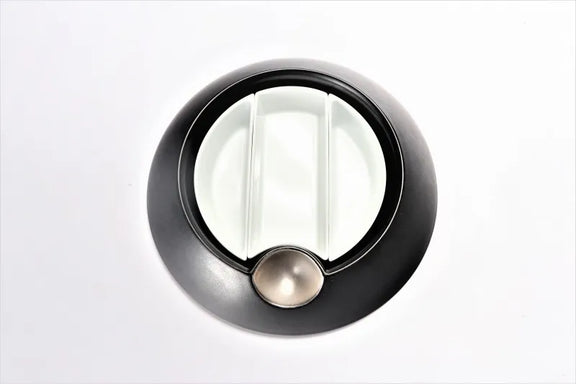 Inside, small white porcelain bowls serve as dividers, ideal for side dishes such as black beans, vinegared foods, or any dish with a little sauce.