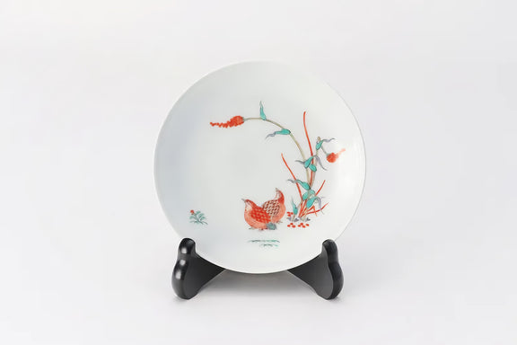 ARITA WARE 4.5-INCH DECORATIVE PLATE “MILLET AND QUAIL” – KAKIEMON KILN | JAPANESE PORCELAIN ART