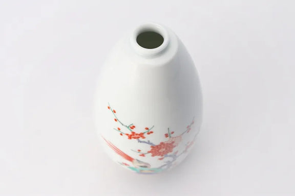 ARITA WARE HANGING BELL-SHAPED SINGLE FLOWER VASE “UME & BIRD” DESIGN – KAKIEMON KILN (MEDIUM)