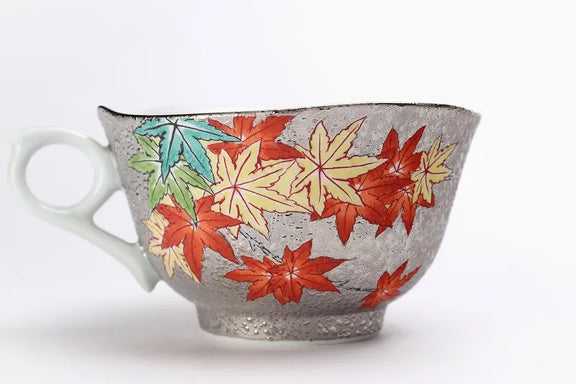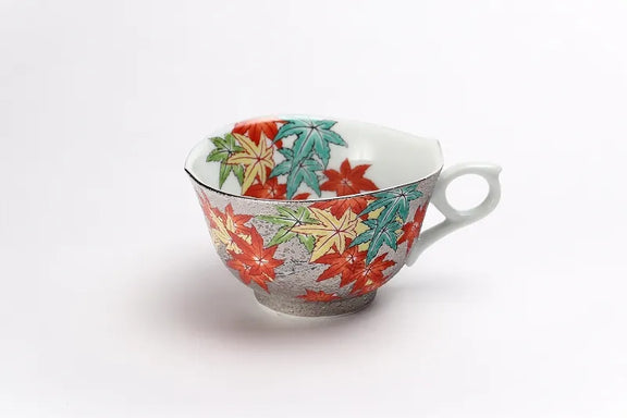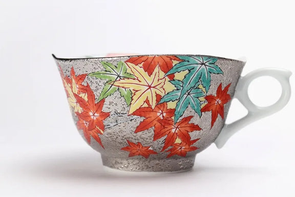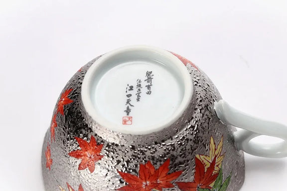 ARITA WARE “PLATINUM MAPLE” COFFEE CUP & SAUCER – KINRYU KILN | JAPANESE PORCELAIN WITH WOODEN BOX