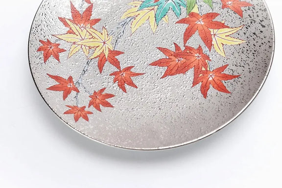 The piece luxuriously incorporates platinum decoration, with each maple leaf delicately hand-transferred and finished by skilled artisans. The platinum detailing is applied using a unique Kinryu technique that gives the surface a subtle three-dimensional texture, creating a sense of depth and refined artistry.