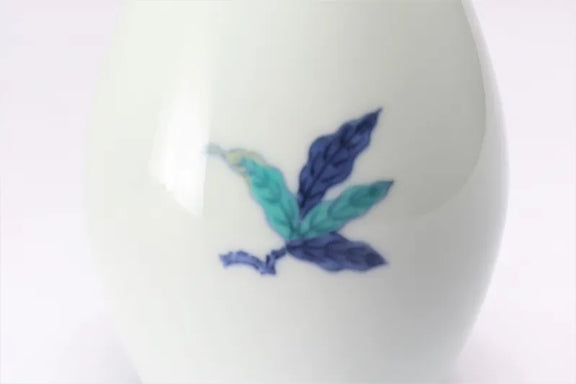 Imaemon has further developed the "sumi hajiki" technique, in which designs are drawn in ink, then overglazed with cobalt blue, and fired. During firing, the ink burns away, leaving the patterns vividly white against the background. The resulting pieces are characterized by their serene and soft white tones, which exude an understated elegance born of meticulous craftsmanship.