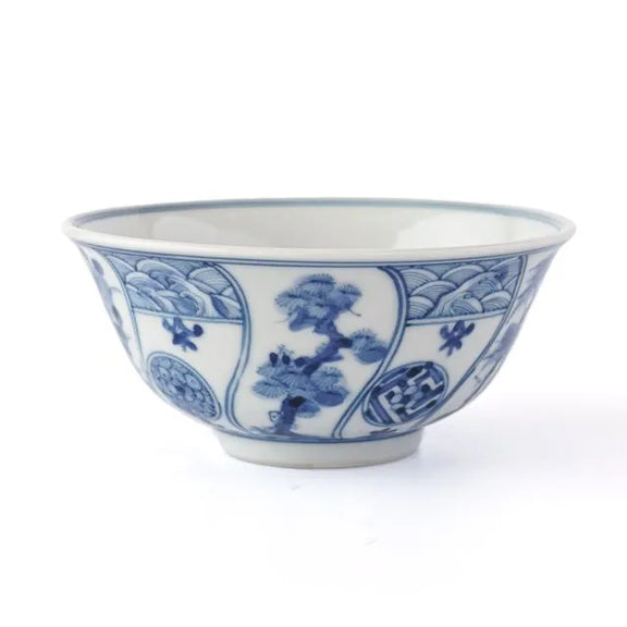 Blue & White Auspicious Tree & Flower Pattern Rice Bowl [Small]