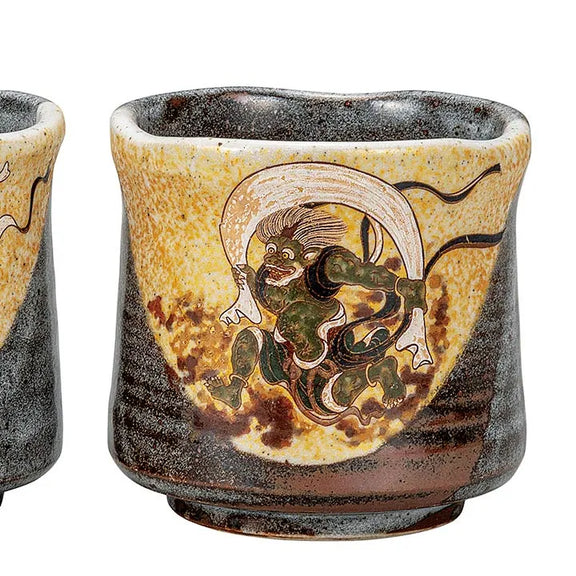 JAPANESE KUTANI PORCELAIN YUNOMI TEA CUP SET – FUJIN AND RAIJIN