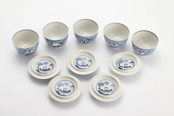 This exquisite set is the work of Choza Yamamoto of Myosen Kiln, one of the most celebrated Kutani ware masters, dedicated to reviving the beauty of Blue & White Old Kutani (Ai-Kutani) in the modern era.