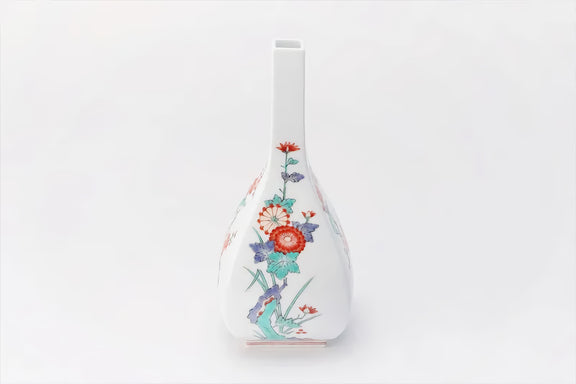 KAKIEMON KILN ARITA PORCELAIN SQUARE IKEBANA VASE – CHRYSANTHEMUM, PLUM BLOSSOM AND BIRD MOTIF