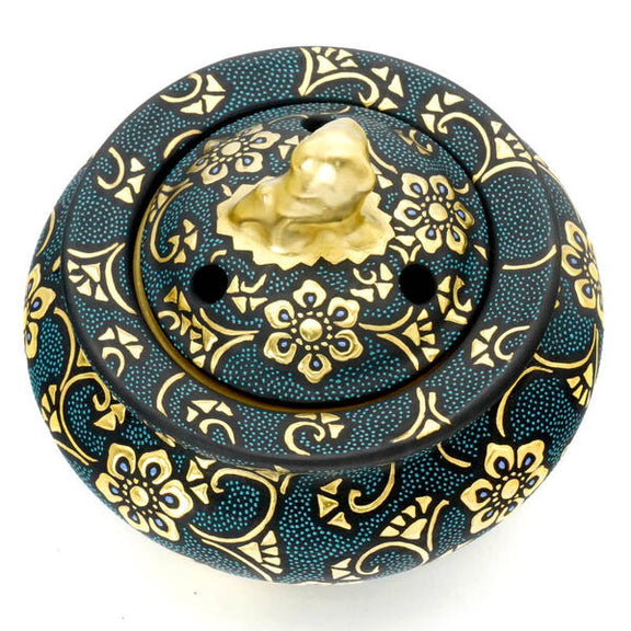 KUTANI WARE SHISHI-TOP INCENSE BURNER – HAND-PAINTED AOCHIBU DOTS WITH RAISED GOLD HŌSŌGE & KARAKUSA MOTIFS | TRADITIONAL JAPANESE KORO