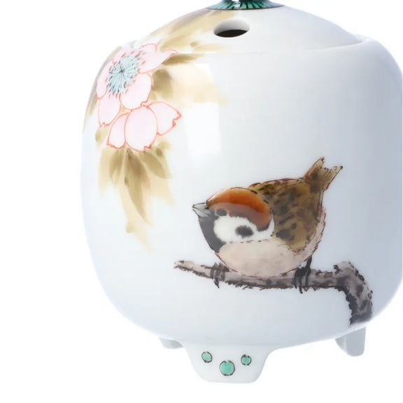 KUTANI YAKI MINIATURE INCENSE BURNER – SAKURA AND SPARROW MOTIF / TOSHITO NAKAMURA