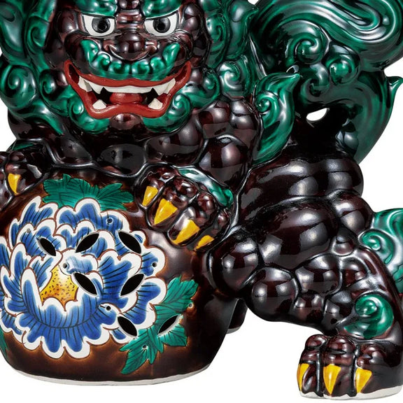 JAPANESE KUTANI PORCELAIN STANDING GUARDIAN LION – COCHI-STYLE GLAZE