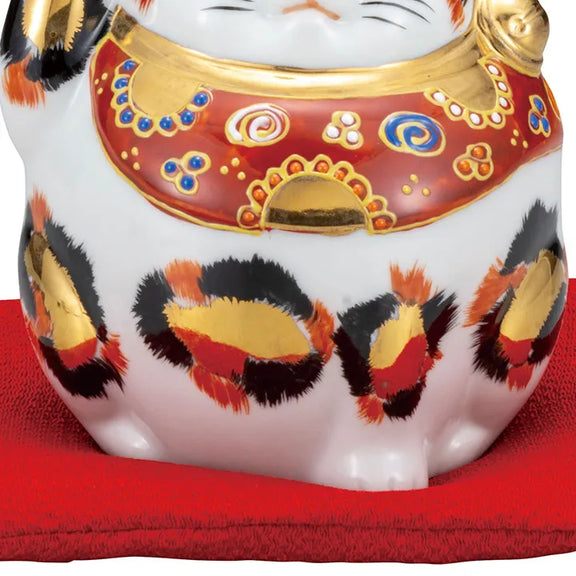 KUTANI WARE MANEKI NEKO LUCKY CAT – GOLDEN CALICO WITH CUSHION