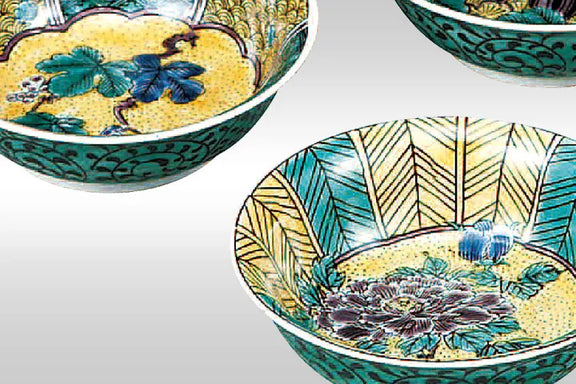 Kutani ware is a pottery produced in the Kaga region of Ishikawa Prefecture and it has a history of over 350 years. It is characterized by the heavy brilliance of the five colors of green, yellow, red, purple, and navy blue that are applied to the bold and daring lines. Its long history has evolved through the tireless efforts and enthusiasm of people who have sought innovation while maintaining tradition. The beauty of the various styles and methods of painting is known as "Japan Kutani" and is highly regarded around the world.