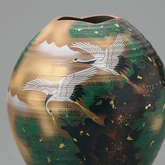 JAPANESE KUTANI WARE VASE – PINE AND CRANE DESIGN