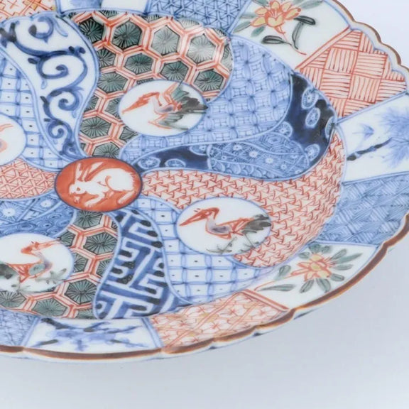 KUTANI WARE FLAT MUKOZUKE PLATE – IROE MARUMON SHONZUI STYLE BY CHOZA YAMAMOTO | JAPANESE HAND-PAINTED SERVING DISH | WOODEN BOX INCLUDED
