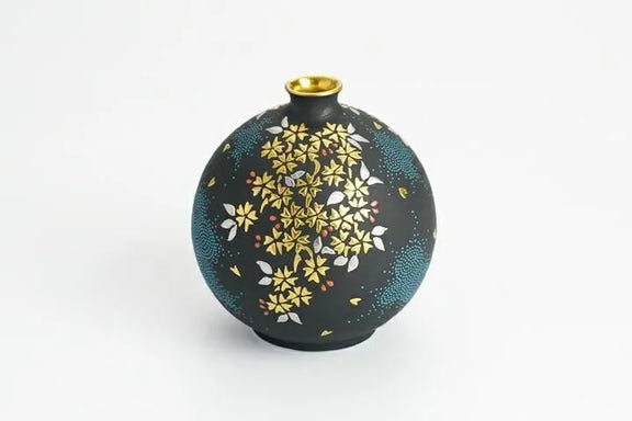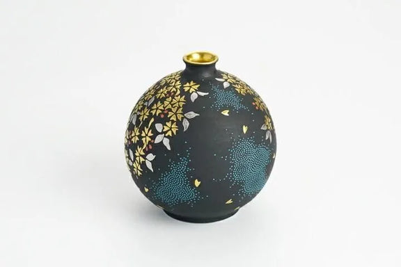 This remarkable flower vase is crafted by Kingyoku Nakata, widely regarded as the foremost contemporary master of the rare and highly intricate Aochibu technique. Although small enough to rest in the palm of your hand, the piece is filled with extraordinary craftsmanship, expressing a refined and captivating world of beauty within its compact form.