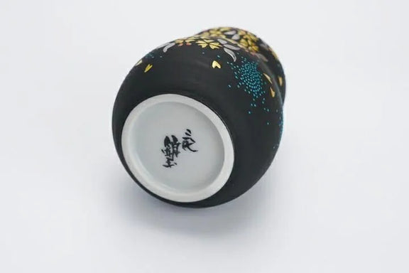 Under the tutelage of his father, Nakada Kingyoku the Second, and decade of rigorous apprenticeship, he has culminated in a profound mastery over the aochibu "blue dots" and morikin "raised gold" techniques. Blending traditional elegance with innovative flair through the use of platinum and spatial elements inspired by the Rimpa school. Hiscommitment to excellence is reflected in his meticulous choice of tools and materials including platinum, ensuring each piece he creates embodies the intricate beauty characteristic of Kutani ware.