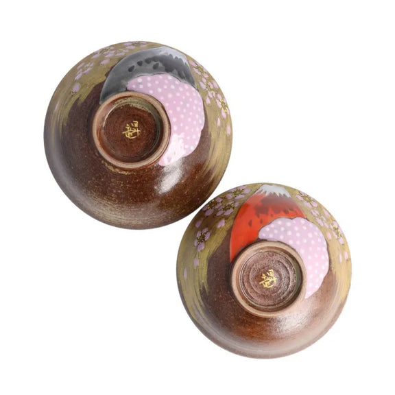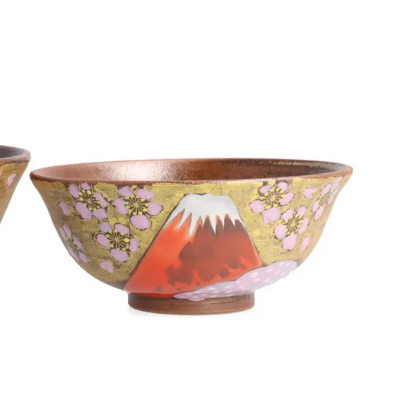 Kutani Ware “Golden Cloud, Sakura & Mt. Fuji” Couple Set by Yoshinori Fukuda (Gift Boxed)