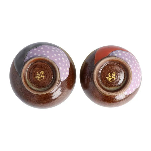 This exquisite Kutani ware couple set is the work of Yoshinori Fukuda, a contemporary master craftsman and certified Traditional Artisan who has mastered the classic painting styles and techniques of Ko-Kutani and Yoshidaya.