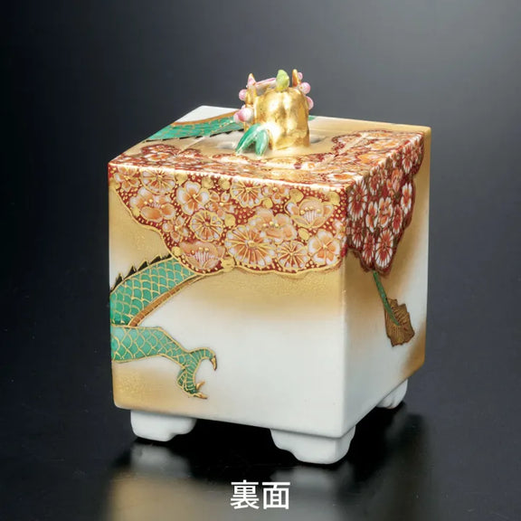 KUTANI WARE HANA-ZUME DRAGON INCENSE BURNER – CRAFTED BY TAKA TOSHIFUMI, PRESENTED IN CORDED WOODEN BOX