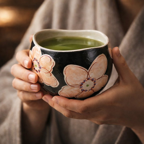 ● Thin teacups or bowls can become hot on the surface, so handle them with care. ● For pottery (earthenware), soaking it in hot water before use allows the material to absorb moisture, helping to prevent tea stains and other marks from forming.