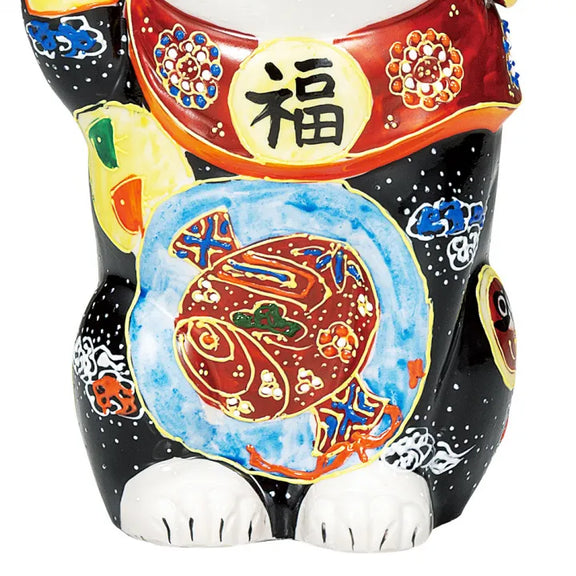 KUTANI WARE LUCKY CAT ‘HŌMON’ – HAND-PAINTED MANEKI NEKO WITH TREASURE PATTERN
