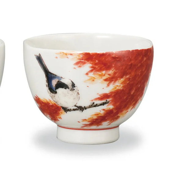 KUTANI WARE PAIR GUINOMI (SAKE CUPS) “SPRING & AUTUMN” BY TOSHITO NAKAMURA WOODEN BOX