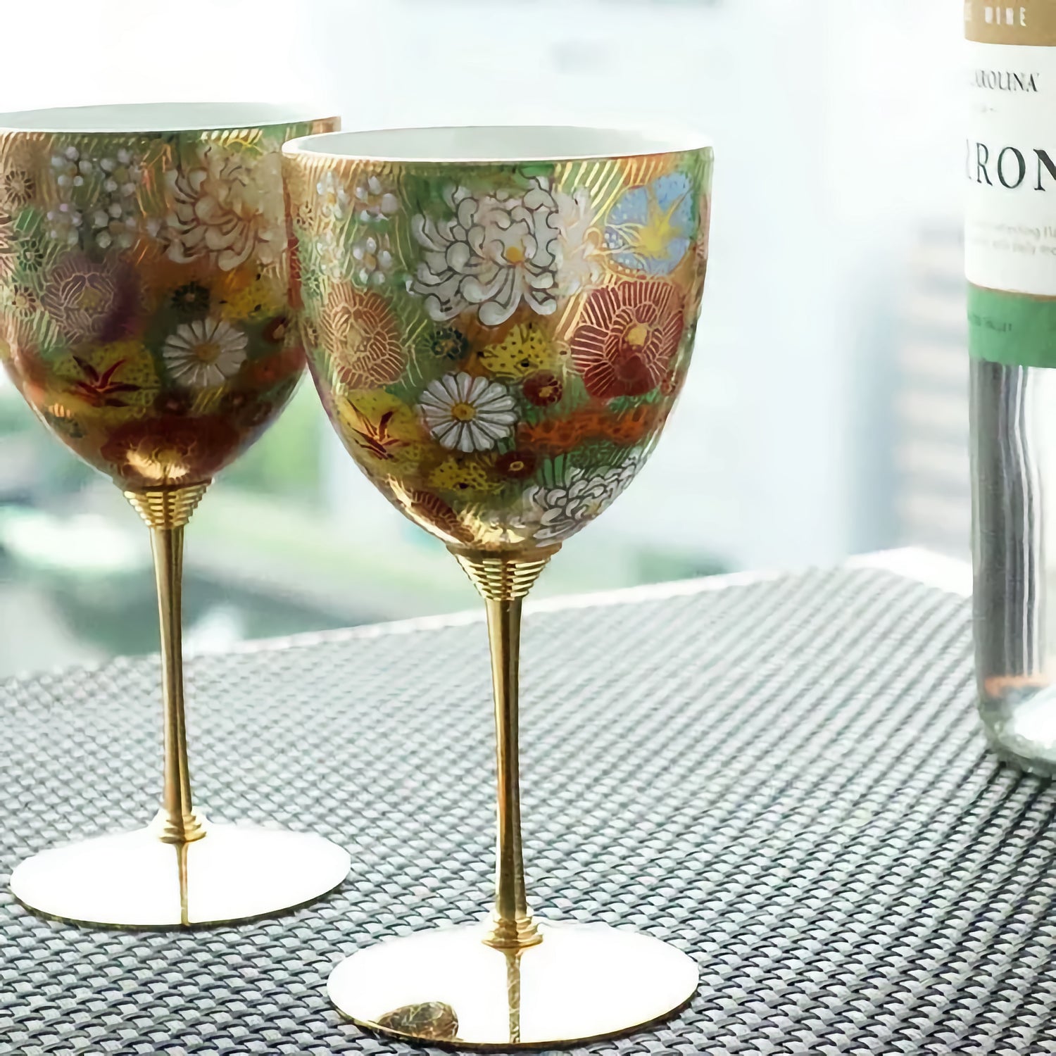 The brilliant gold stem sparkles gently depending on the light, while the richly decorated Hanazume floral design adds a sense of grandeur to your table setting. More than just tableware, these wine cups elevate the entire dining atmosphere, making them perfect for both fine cuisine and refined interior décor.