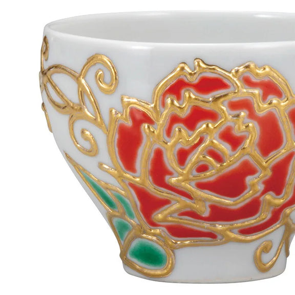 JAPANESE KUTANI WARE SAKE CUP (SAKAZUKI) – ROSE DESIGN BY SHIHO AIKAWA