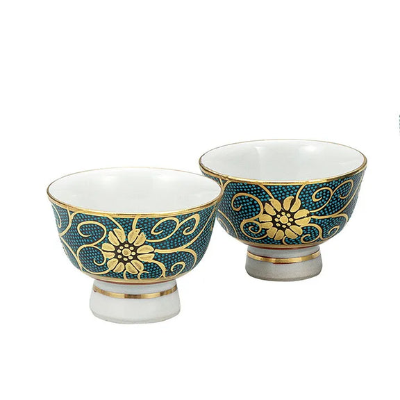 KUTANI WARE SAKE SET – AOCHIBU KARAKUSA BLUE ENAMEL ARABESQUE (GIFT BOX INCLUDED)