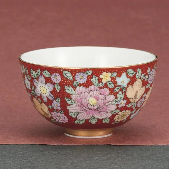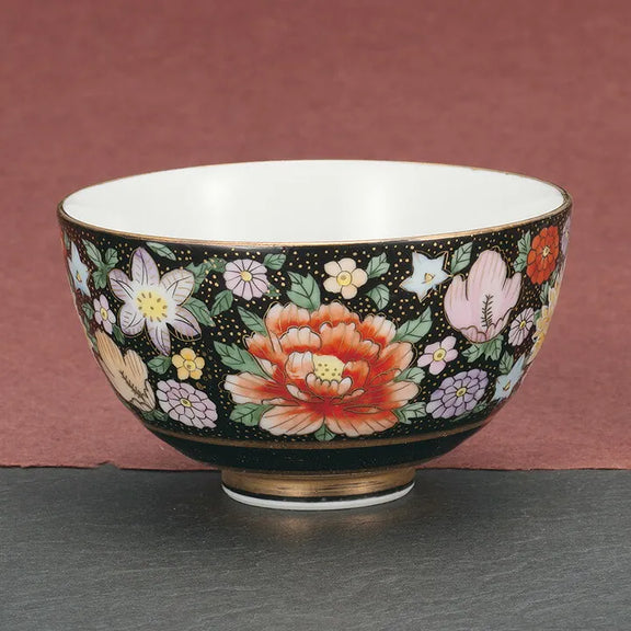 KUTANI WARE PAIR RICE BOWLS – HANA-ZUME DESIGN / TAISHI KILN (GIFT BOXED)