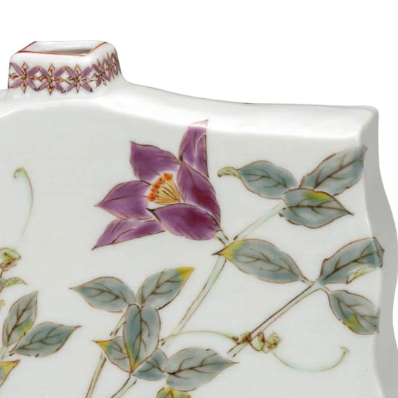KUTANI WARE SINGLE-STEM VASE – “TESSEN” (CLEMATIS) HAND-PAINTED BY YUKA HIRANO | GIFT BOX INCLUDED