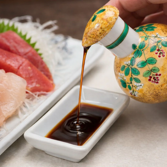 KUTANI WARE SOY SAUCE DISPENSER (SMALL)YOSHIDAYA HAGI DESIGN, BIZAN KILN, JAPANESE CERAMIC SAUCE CONTAINER