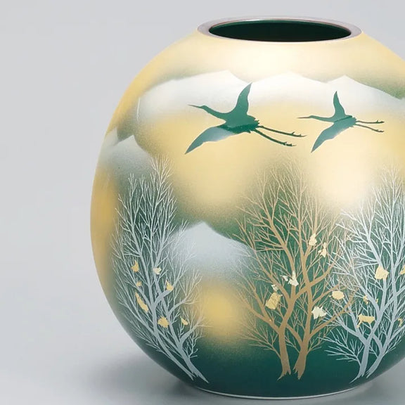 KUTANI WARE VASE “GOLDEN CLOUD & MOUNTAIN FOREST LANDSCAPE” IN GIFT BOX