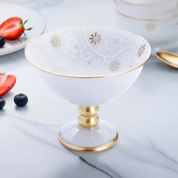 This piece features a charming plum blossom motif rendered in gold on a white-purple porcelain surface.